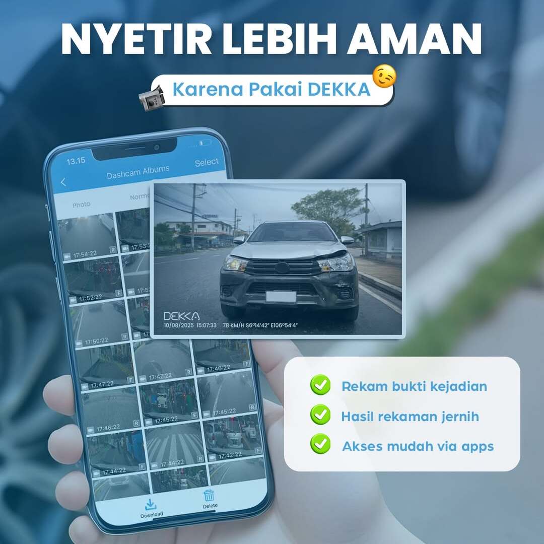 Kemudahan akses juga menjadi nilai tambah dari dashcam DEKKA. Melalui aplikasi yang terintegrasi, pengguna dapat dengan mudah melihat, mengunduh, hingga mengelola rekaman langsung dari smartphone. Tanpa perlu repot memindahkan data secara manual, semua bisa dilakukan dengan cepat dan praktis. Fitur ini sangat membantu bagi pengguna yang membutuhkan akses instan terhadap rekaman penting.
